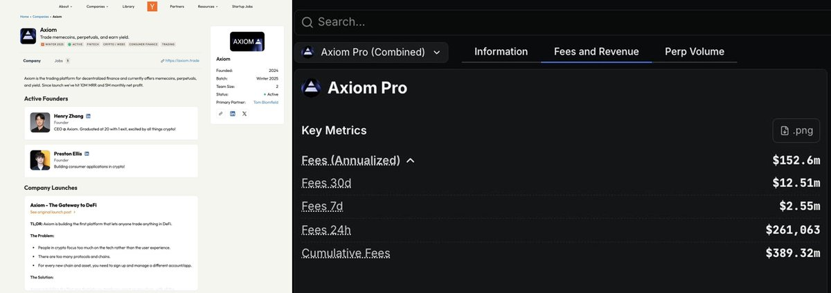 액시엄(Axiom)은 미스트(Mist)와 칼(Cal)이 2024년에 설립한 암호화폐 거래소입니다. 2025년 Y Combinator의 겨울 배치에서 인큐베이팅 과정을 거친 후, 액시엄은 누적 매출 3억 9천만 달러를 돌파하며 업계에서 가장 수익성이 높은 기업 중 하나로 빠르게 성장했습니다.