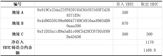 주소 C: 총 3,250만 YU가 발행되었고, 3,330만 YU가 상환되었으며, YBTC는 소각되고 BTC는 회수되었습니다. 모든 거래는 정상입니다.