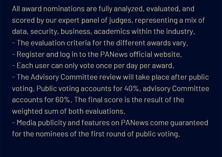 Therefore, for the 4th PANews PARTY AWARD ( PANews’Retrospect of The Year AWARD) , we have chosen 'CONNECT' as the theme. From tens of thousands of projects, through various dimensions of assessment and screening, and after the selection by an authoritative jury and public online voting, we have selected 21 awards in 9 major categories. Our aim is to discover and commend outstanding Web3 projects, teams, and individuals, connecting Web3 with the real world, and bridging new and old cycles.