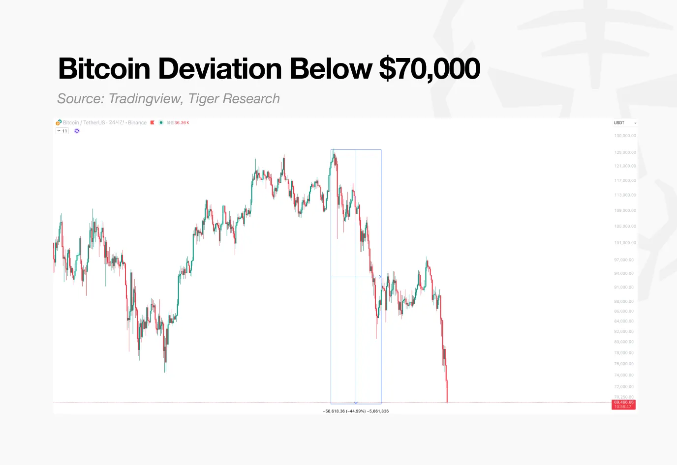 比特幣已跌破7 萬美元。在市值排名前100 名的加密貨幣中,只有7 個仍保持在200 日移動平均線之上。相較之下,納斯達克100 指數中有53 隻成分股仍在該門檻之上交易。