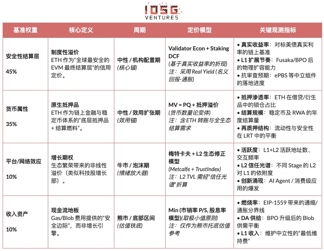 權重再平衡: 顯著上調安全性與結算溢價權重,弱化協議收入與L2 擴張的邊際貢獻。