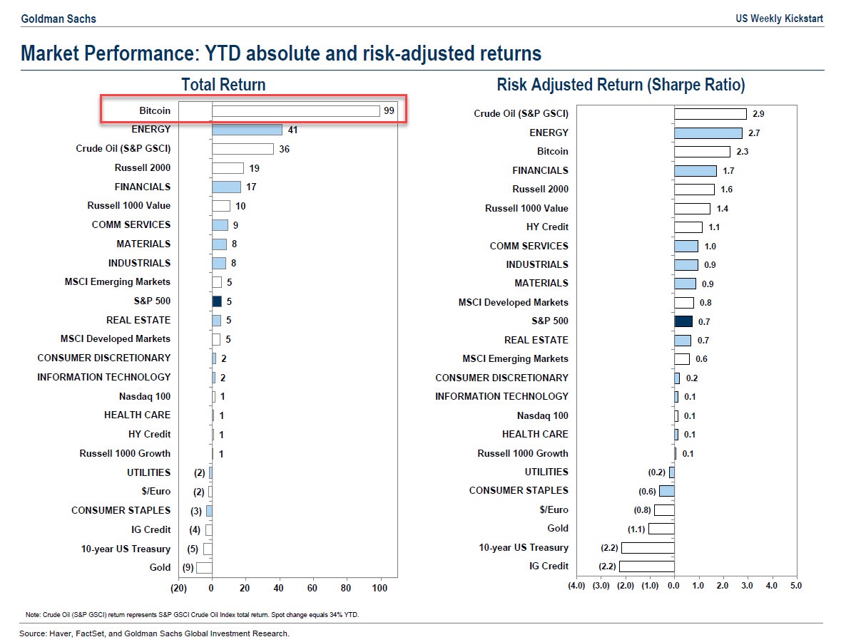 但真正的態度轉折出現在2020年。當年,高盛在一場面向客戶的電話會議中明確表示,比特幣甚至不能算是一種資產類別,既不產生現金流,也無法有效對沖通膨。這番公開唱空,引發了市場不小的爭議。
