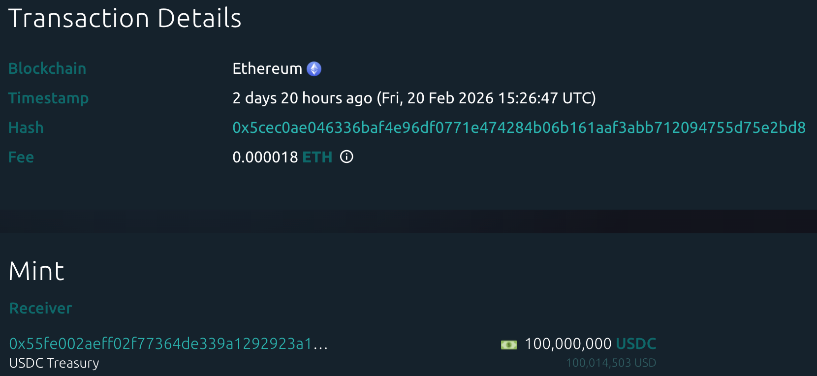 据Whale Alert数据显示,本周USDC Treasury总计增发20.88亿枚USDC,Tether Treasury本周总计无增发USDT。本周稳定币增发总量为20.88亿枚,较上周稳定币增发总量(30.57亿枚)下降31.69%。