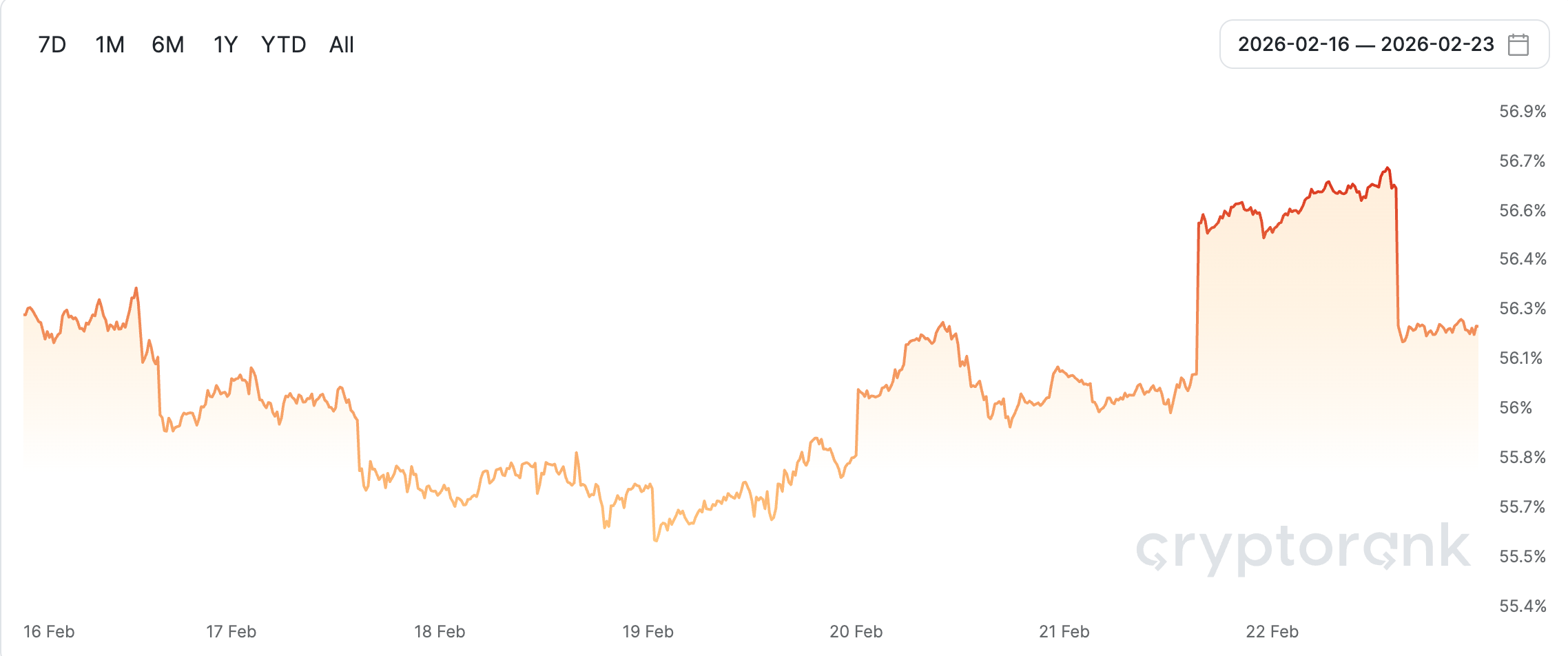 数据来源:Bitcoin dominance from cryptorank, https://cryptorank.io/charts/btc-dominance