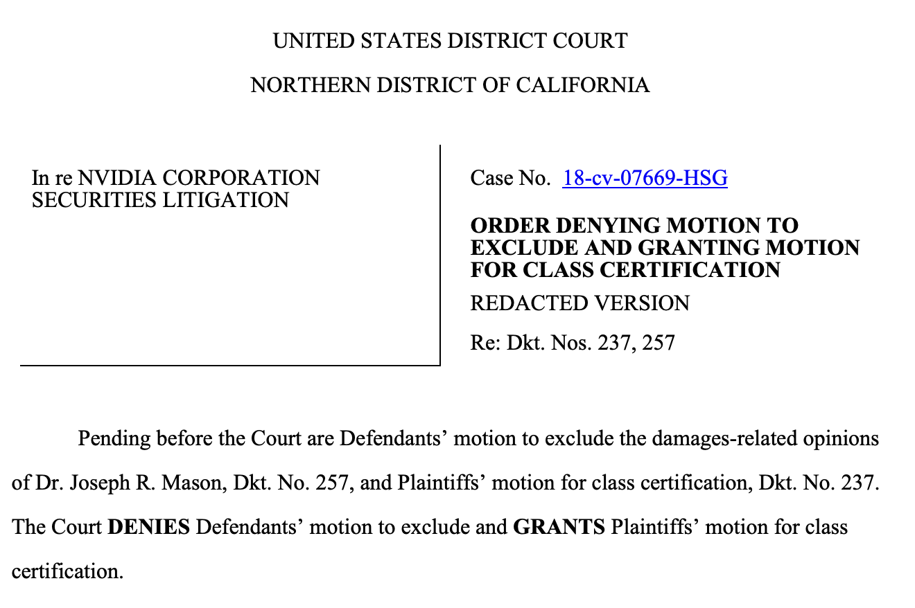此次核准的集體訴訟涵蓋2017年8月10日至2018年11月15日期間買入英偉達股票的投資者。法院計劃於4月21日召開案件會議,屆時法官將明確後續審理流程。