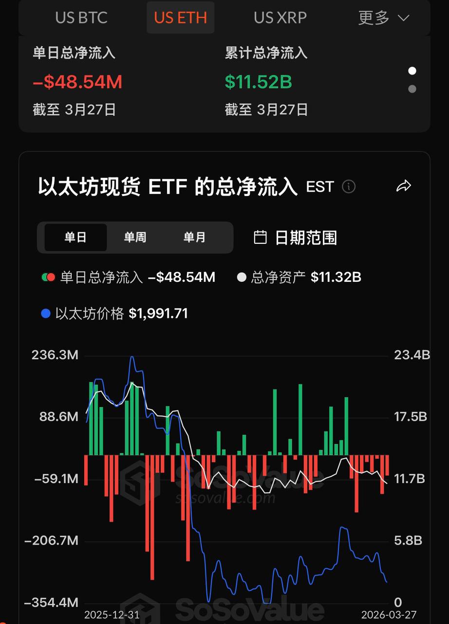 PANews 3月28日消息,根據SoSoValue 數據,昨日(美國東部時間3 月27 日)比特幣現貨ETF 總淨流出2.25 億美元。