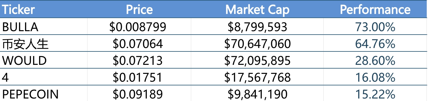日活跃地址与TVL:日活跃地址反应了公链的生态参与度和用户粘性,TVL反应了用户对平台的信任程度。日活跃地址方面,BNB Chain(242万个)较上周几乎持平;Aptos(51.4万个)、Ethereum(45.5万个)和Ton(10.4万个)分别下降52.09%、10.54%和6.45%;Sui(28.4万个,14.38%)和Solana(403.6万个,+8.34%)有所上升。TVL方面,Solana($5.57B,-11.88%)和Aptos($0.269B,-8.19%)有所下降,其余链变化不大,分别为Sui($0.566B,+0.89%)、Ethereum($54.47B,3.17%)、BNB Chain($5.38B,2.75%)、和Ton($0.055B,-1.38%)。