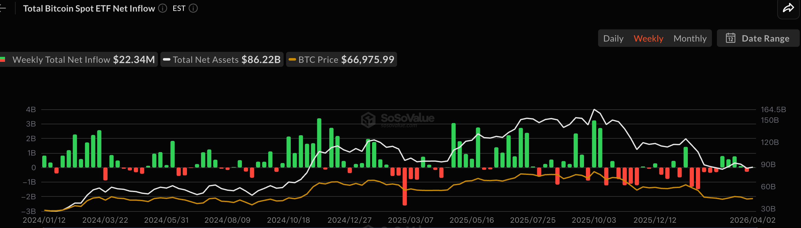 截止至发稿,美国比特币现货ETF累计总净流入约559.6亿美元,本周净流入2234万美元;美国以太坊现货ETF累计总净流入约114.8亿美元,本周净流出7117万美元。