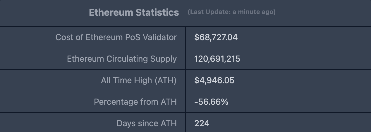 ETHUSD :现价$2,146.74,历史最高价$4,946.05,距最高价跌幅约56.66%
