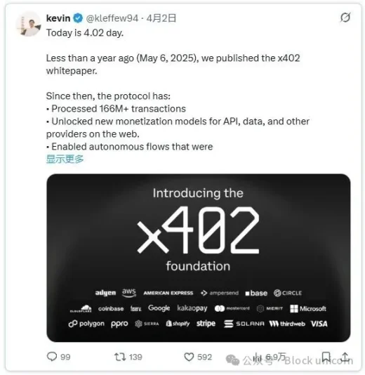上週四,Coinbase 正式將x402 協議貢獻給Linux 基金會,使其成為中立的網路標準。