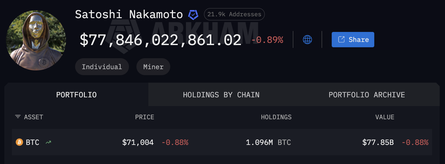 匿名身分為中本聰增添了持續至今的神秘色彩,而其約110萬枚BTC(約770億美元)持倉的潛在歸屬與動向,也始終牽動著市場神經。