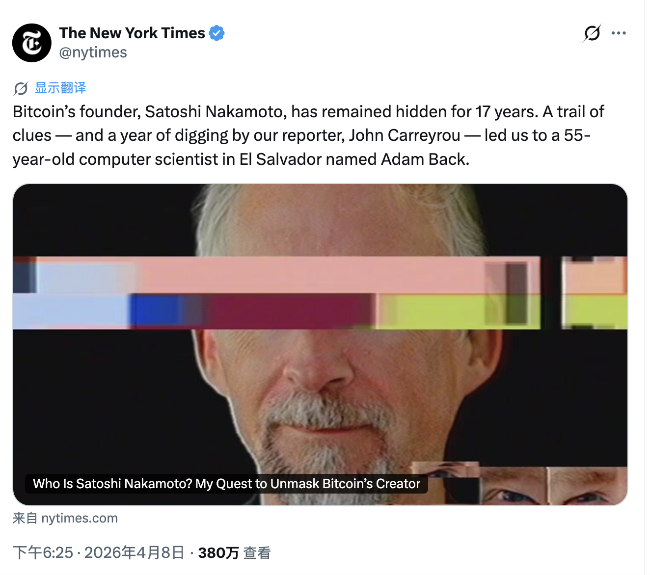 近期,《紐約時報》發布萬字調查,從語言風格、技術路徑與歷史脈絡出發的多重比對,將Blockstream執行長Adam Back列為最有力的中本聰候選人。然而,這項說法很快就遭到本人明確否認,相關論點也被業界普遍質疑難以成立。
