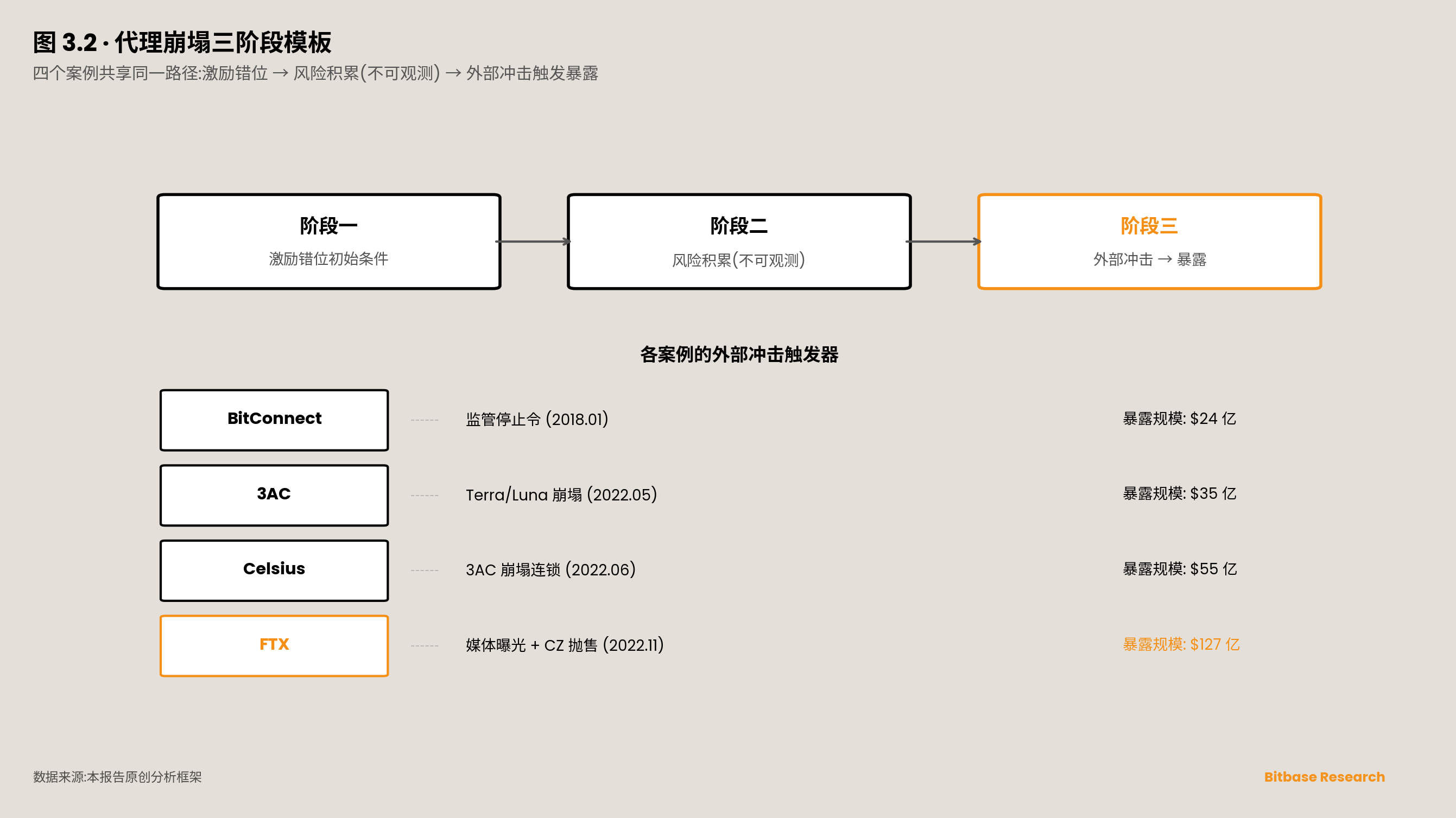 从 BitConnect 到 FTX,代理崩塌的结构从“显性庞氏”走向“隐性三重冲突”,但共享一个不变的模板。