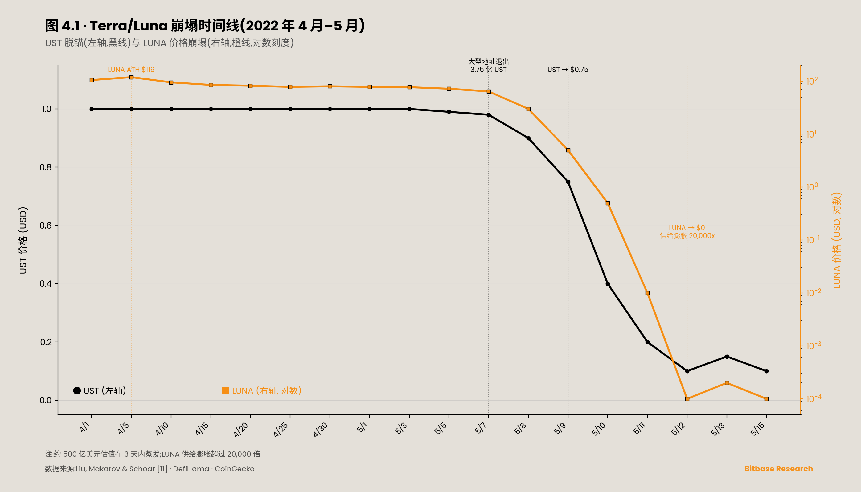 [¹¹]: Terraform Labs 创始人 Do Kwon 后来在多个司法辖区面临刑事和民事起诉。但本章的分析焦点是算法机制的结构性缺陷,而非 Do Kwon 的个人行为。