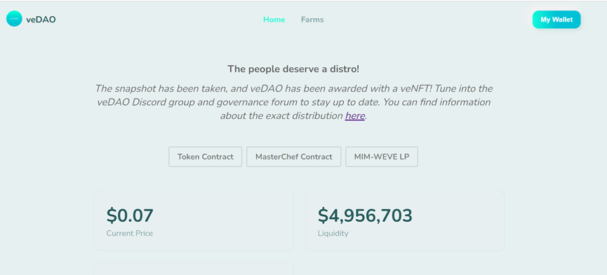 VeDAO 快速提升TVL的策略是,用戶可以通過為期四周的資產鎖倉和流動性挖礦來獲得該項目的治理通證WEVE獎勵。 VeDAO頁面十分簡單,只有用戶鎖倉資產功能,接受用戶投入ETH、FTM、USDC、穩定幣MIM、YFI等資產,鎖倉即可獲得WEVE。目前,VeDAO上單一資產的鎖倉挖礦已暫停,僅支持用戶為「MIM-WEVE」資金池做流動性、獲取WEVE獎勵。