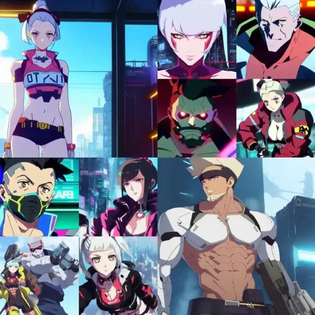 提這種模型並不是打廣告,而是致敬其開創意義,起碼在國內都是值得後來者去模仿和超越的。 Cyberpunk Anime Diffusion 汲取了大量《賽博朋克:邊緣行者》畫風素材,在基礎模型上使用的是一個基於Waifu Diffusion V1.3 + Stable Diffusion V1.5 VAE 的融合模型,然後用Dreambooth 導入自定義數據集訓練了13700 步就獲得了以下的生成效果(使用方法,在prompt 中加入關鍵詞"dgs illustration style")。