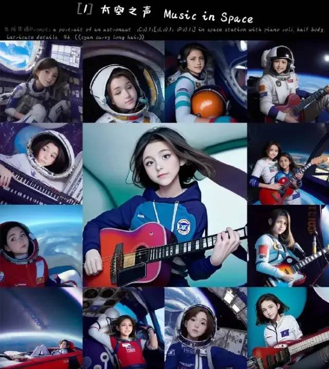 再分享另外一個知名博主“大谷Spitzer”使用Textual Inversion 進行“分鏡設計”的案例。我們在上面提到要做二次元漫畫離不開固定主人公形象,所謂分鏡設計便是能否用AI 繪製出獨特且相貌保持連續性的動漫角色。大谷用Textual Inversion + 自製數據集訓練了6、7 種不同的相貌作為臉部基因。之後在輸入給AI 的文字中,即可通過改變訓練好的幾個相貌tag 的比例權重,融合出現實裡不存在,同時在系列圖片里長相可以保持一致的角色。如下兩幅圖便是不同比例權重下出現的兩位“主人公”,而對於同一位主人公,可以通過AI 讓其出現在各種各樣的場景。比如“太空之聲”裡的女孩是同一個形象的不同故事表達,而“都市探員”裡的主人公膚色更深、形象健碩,真的像一名探員。