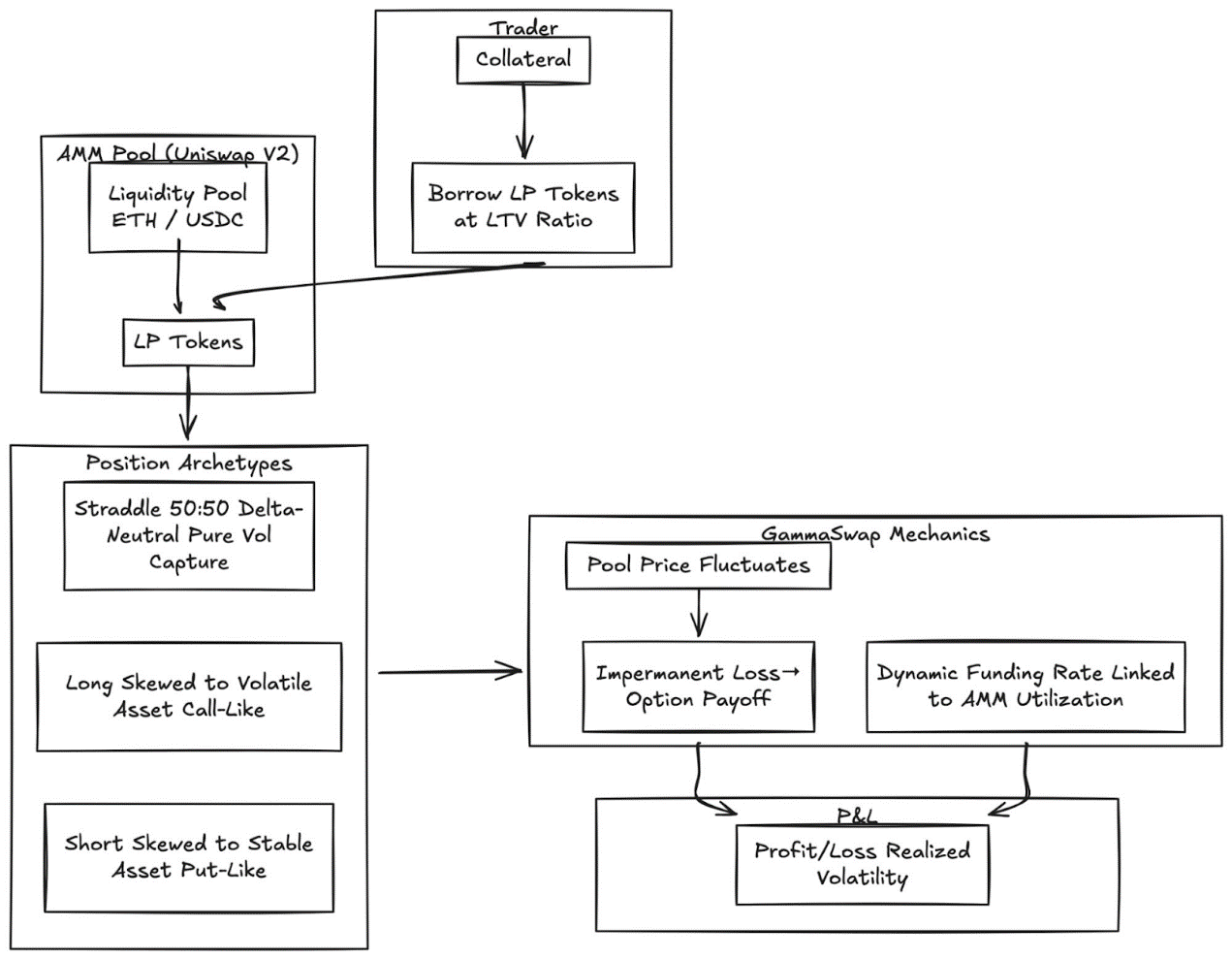 - 選擇權作為動態避險工具:Uniswap v3/v4 中的LP 可以透過買進賣權或建構delta 中性價差來降低無常損失。 GammaSwap 和Panoptic 允許流動性作為抵押品,用於持續選擇權收益,從而抵消AMM 的風險敞口。