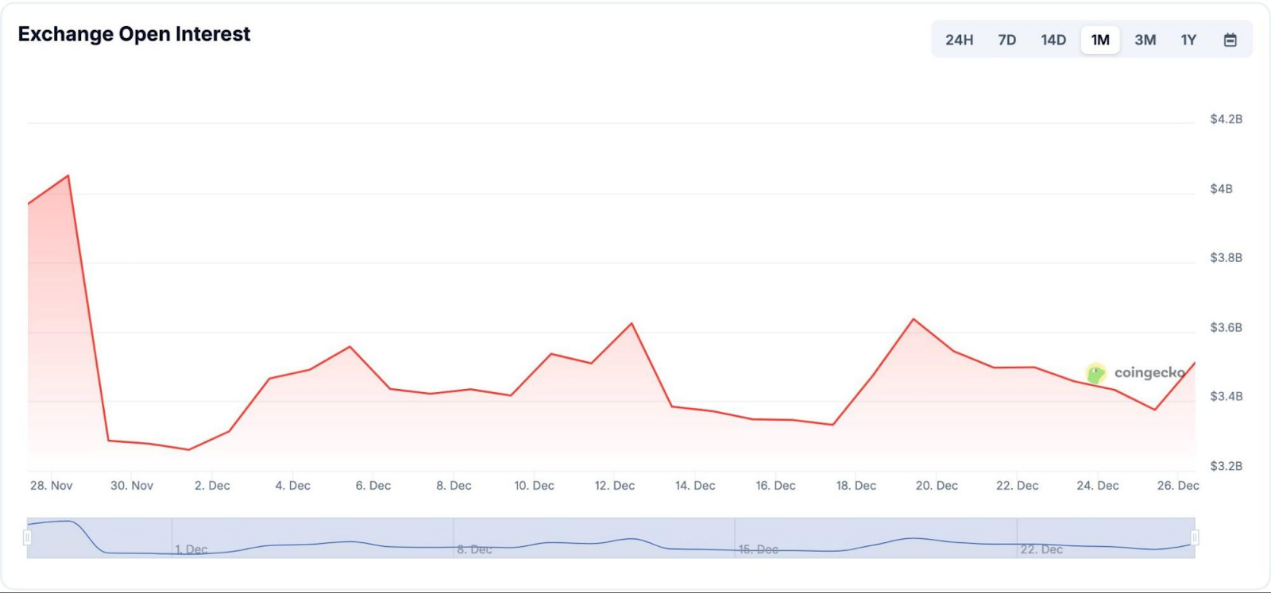 與中心化交易所的差距依然顯著。 Deribit 在全球佔據主導地位,每日未平倉合約超30 億美元。