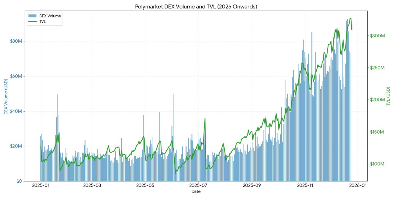 - Polymarket 在2024 年處理了超90 億美元的交易,每月活躍交易者高峰達31.45 萬。