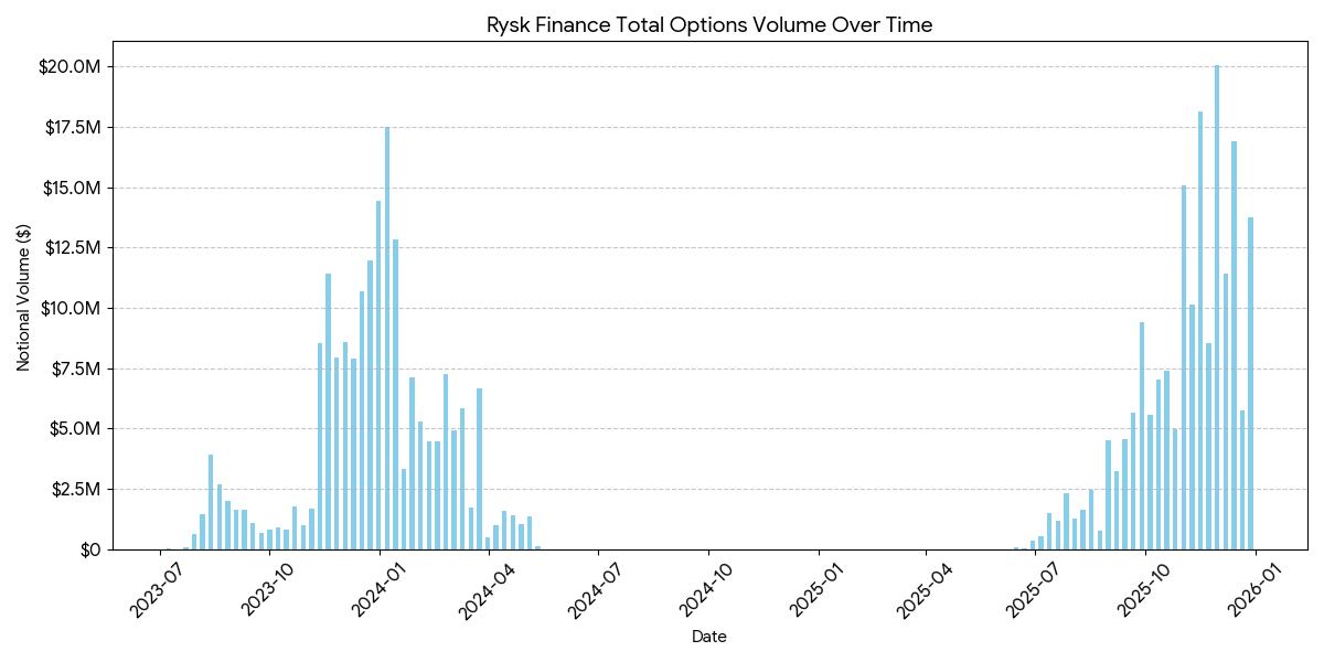 在Rysk 平台上的平均持倉規模達到五位數,顯示有機構層級的資金投入。