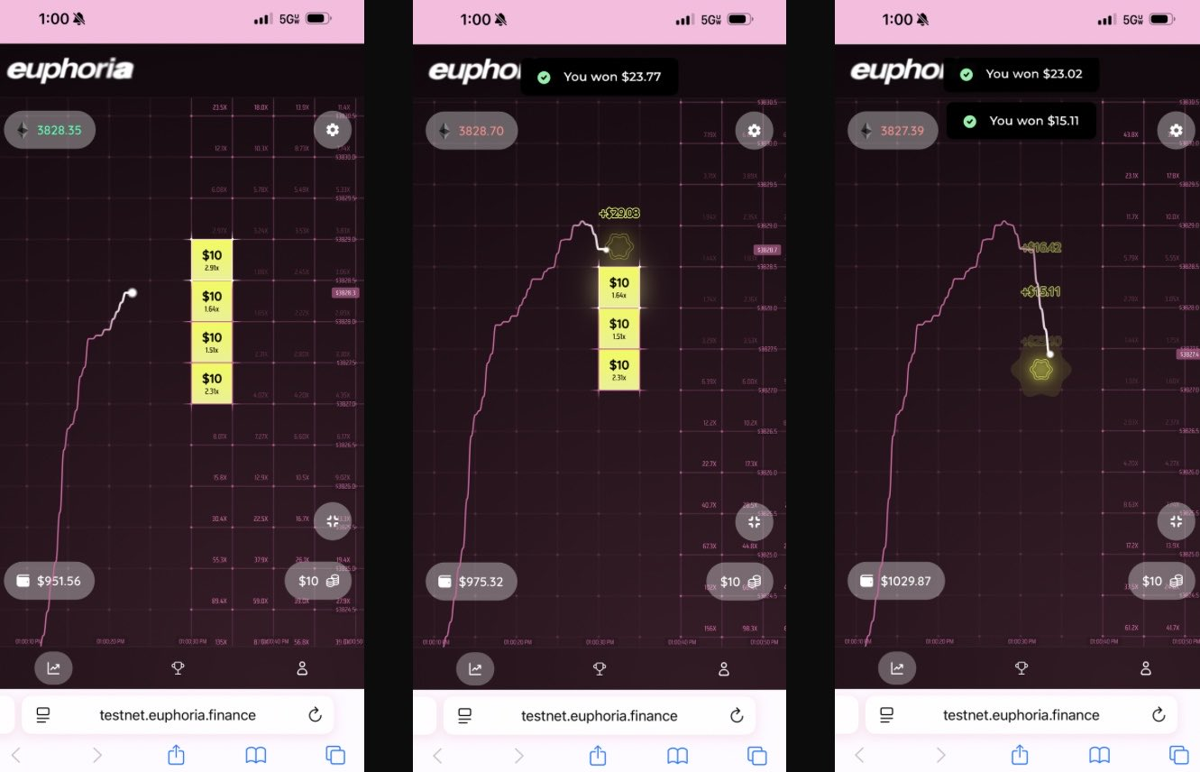 Euphoria 以一種激進的簡化理念獲得了750 萬美元的種子輪融資。其願景是:「您只需查看圖表,看到價格線的變動,然後點擊網格中您認為價格接下來會觸及的方格。」無需訂單類型、無需保證金管理、無需希臘字母,只需在CLOB 上執行正確的方向性押注。