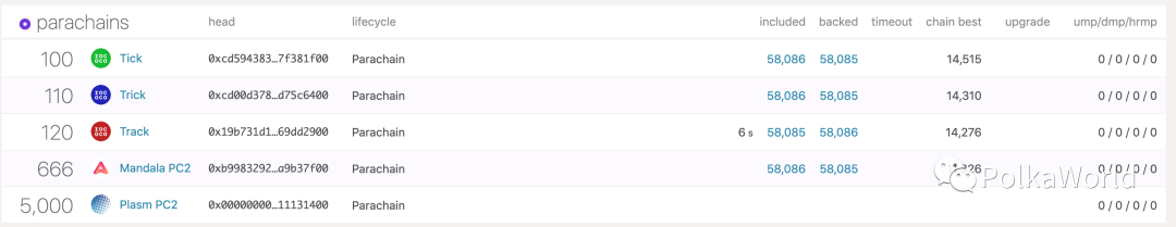 目前Acala 的測試網Mandala PC2 (id 666) 贏得平行鏈測試網Rococo 上的第一個平行鏈插槽拍賣! Plasm 贏得了Rococo 上的第二個平行鏈插槽! https://polkadot.js.org/apps/?rpc=wss%3A%2F%2Frococo-rpc.polkadot.io#/parachains