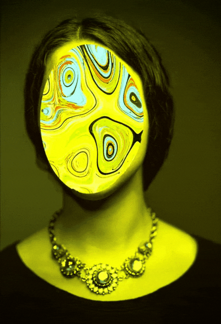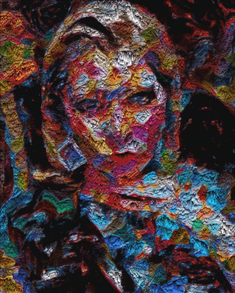 "Portrait of the Artist in Digital Decay" 是Sarah 於東村拍攝的自畫像。用Facebook 3D 照片創建的立體效果,神經成像成“繪畫”,然後進行數位像素排序。這是Sarah 的標誌性作品,跨越低級肉身化,華麗且耀眼、上乘、招搖而壯闊。