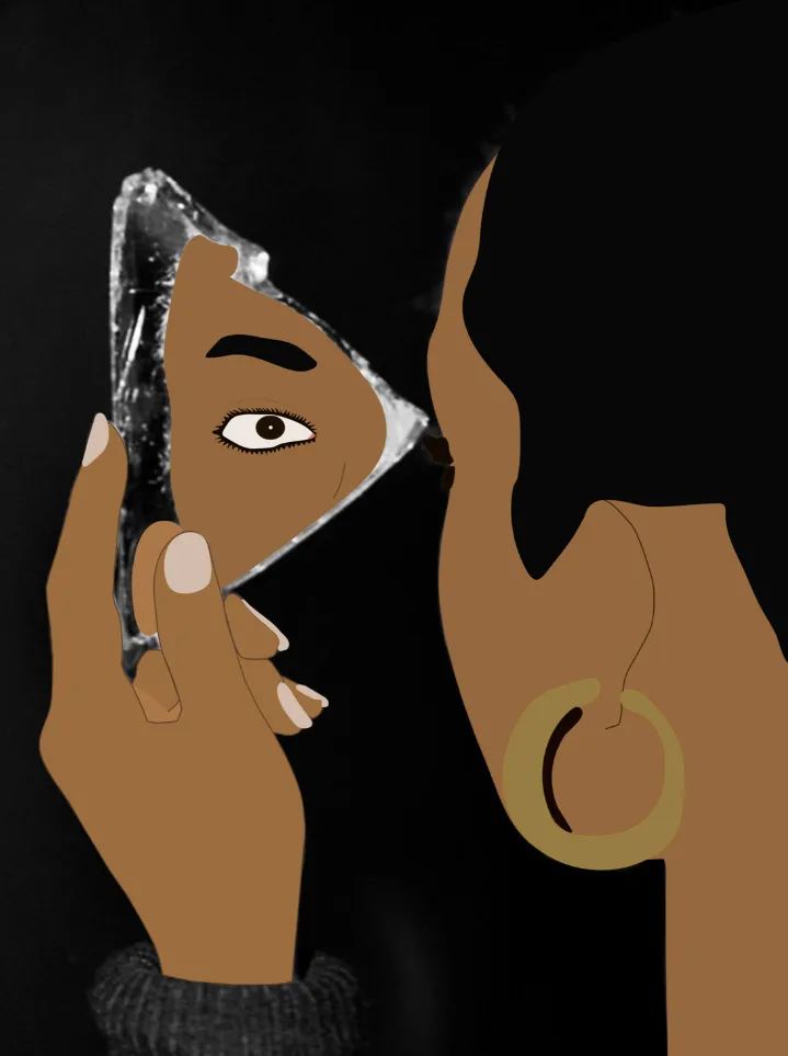 "Seeing Me",Paola 陌生的看著破碎鏡子中的自己,試圖弄清楚她到底是誰。作為定居在美國的年輕黑人女性藝術家,Paola 在她的藝術生涯中面臨著諸多挑戰,也是很多常人無法想像的。