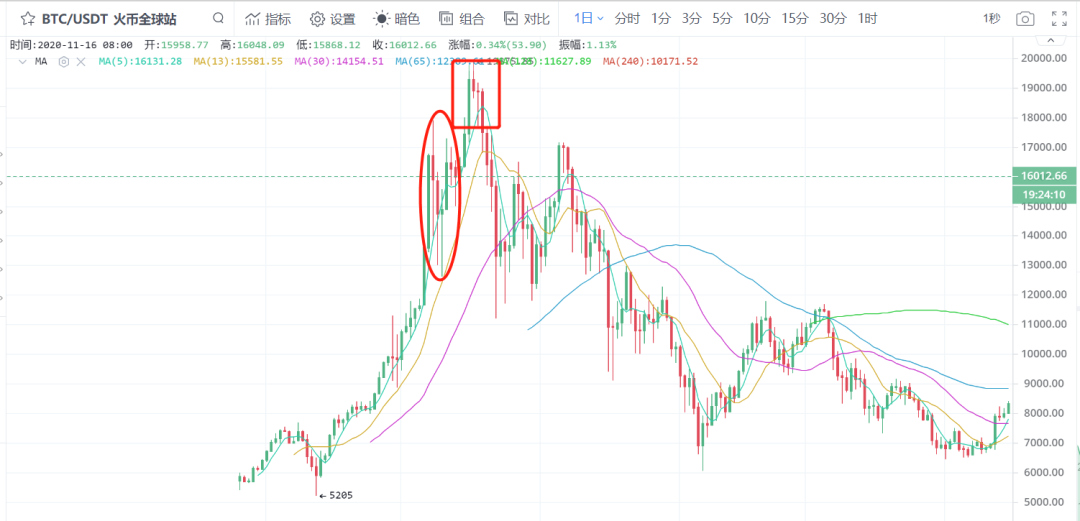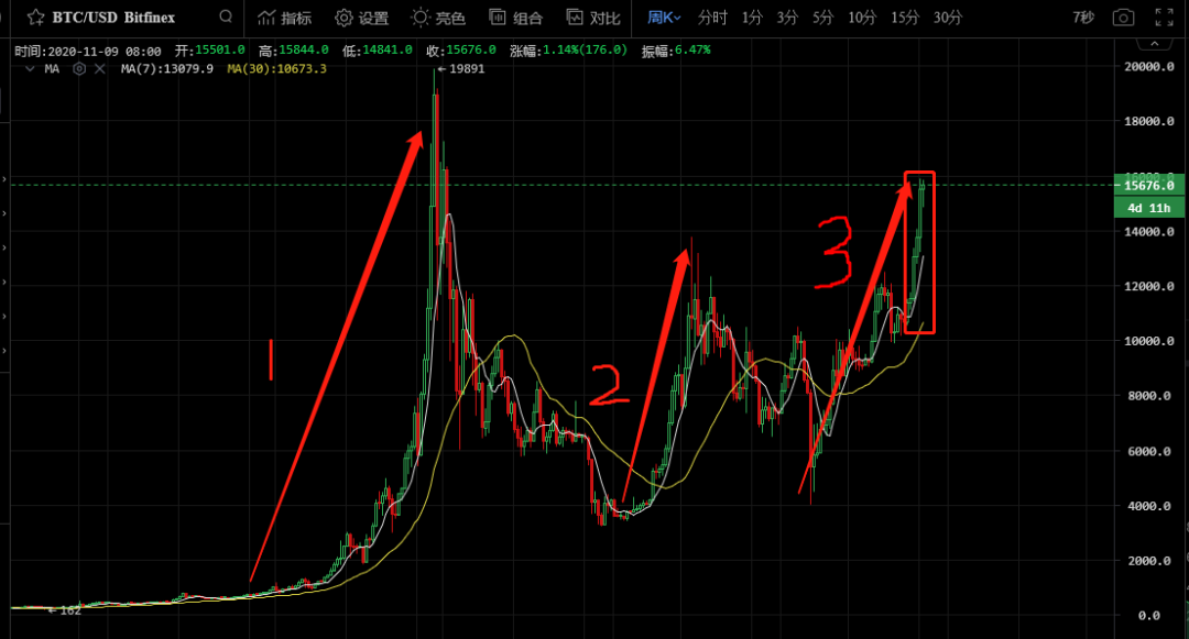 至於2019 年那波“合約牛”,因為走勢很弱,都沒站上去14000 美元,不提也罷。