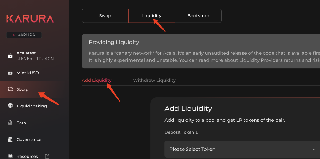 需要注意的是,KSM-LKSM 交易對當前並未開啟,Karura Swap 將在活動正式開啟前上線通過runtime 上線該交易對,屆時可以添加流動性。