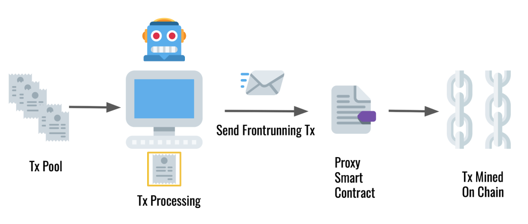 通常,Frontrunning是在一個已知的未來事務發生之前,在執行隊列中第一個獲取事務的行為。