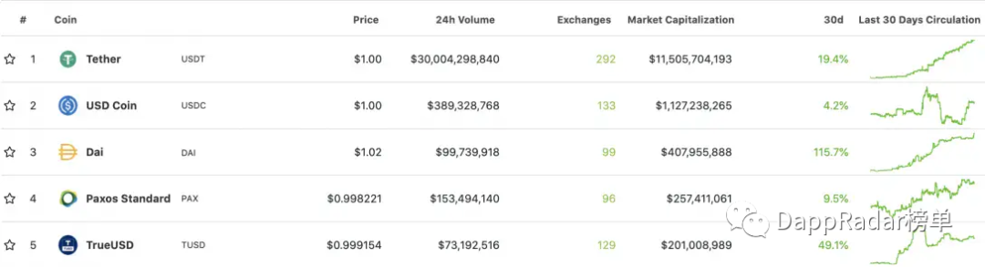 Tether是一個與美元掛鉤的穩定幣,也是第一個被創建出來的穩定幣,是dapp生態系統中最受歡迎的穩定幣類型,也是流通量和市值最大的一類穩定幣。