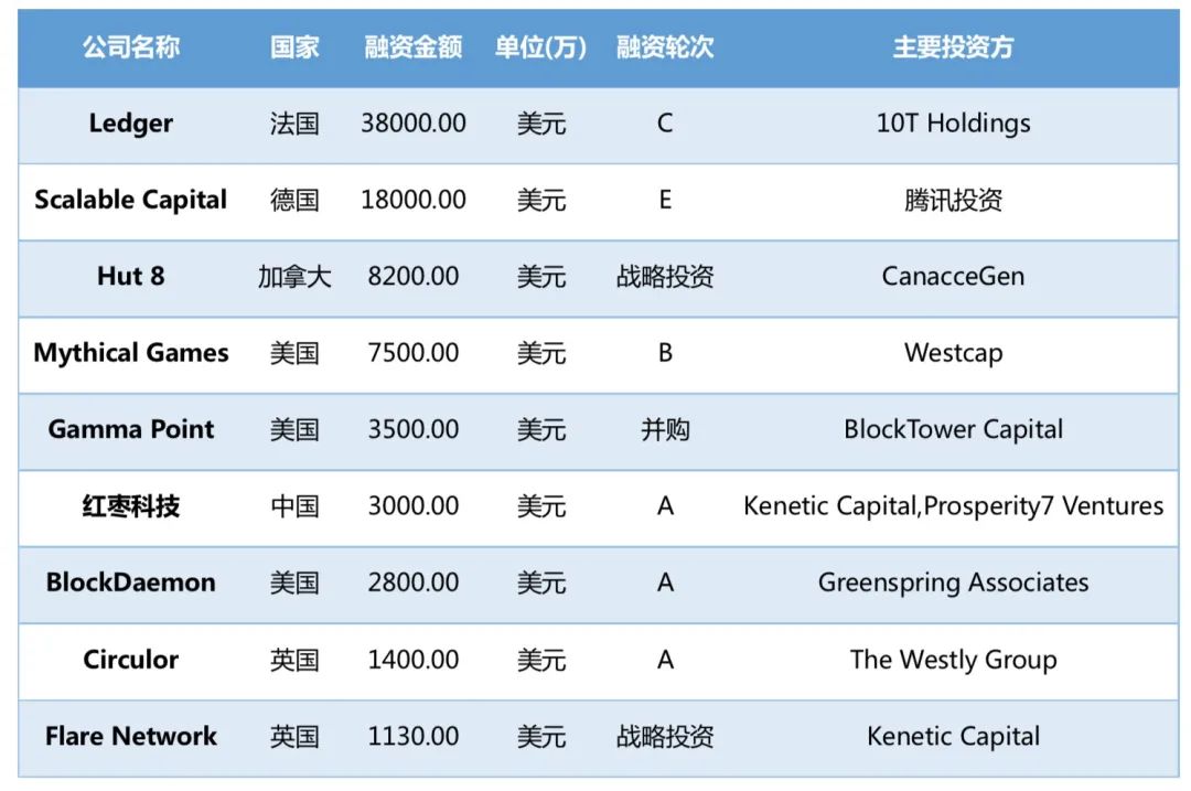 表1:2021年6月第2週區塊鏈領域融資額Top10