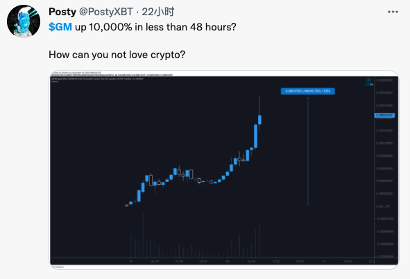 在GM誕生後,就像第一段文章裡描述的,它很快就成了一個MEME代幣。飛速發展。
