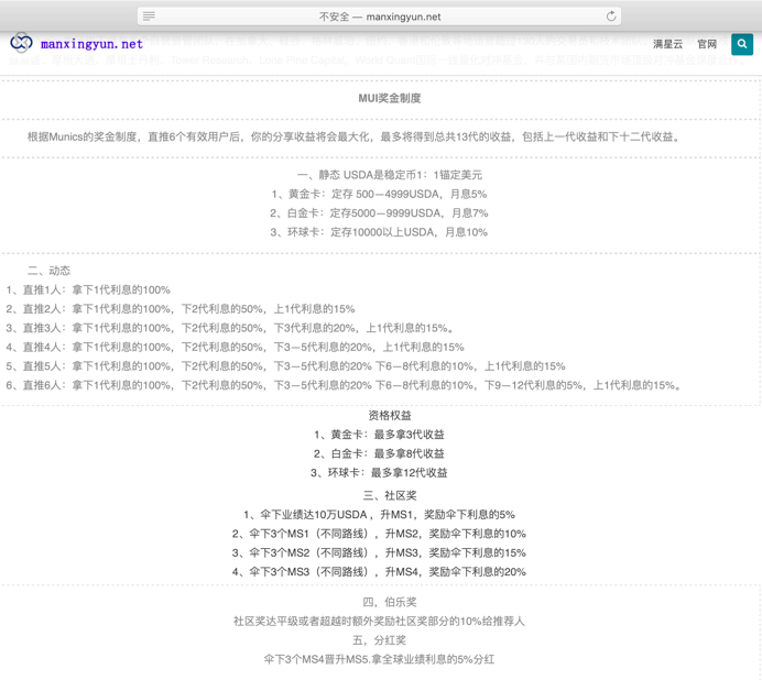 滿星雲多個宣傳網站保留了下來,也得以讓外界一窺其自建Monics數字貨幣體系大搞傳銷“事業”的歷史。