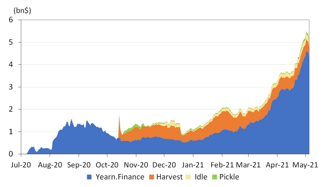 受Compound流動性挖礦項目的啟發,Yearn Finance在2020年7月擴展了這一模式,在他們的Earn產品發布的同時發明了更複雜的策略,稱為Vault。隨著更多形式的流動性挖礦項目的出現,Harvest Finance和Pickle Finance在去年夏天晚些時候專門使用LP代幣進行Yield Farming。