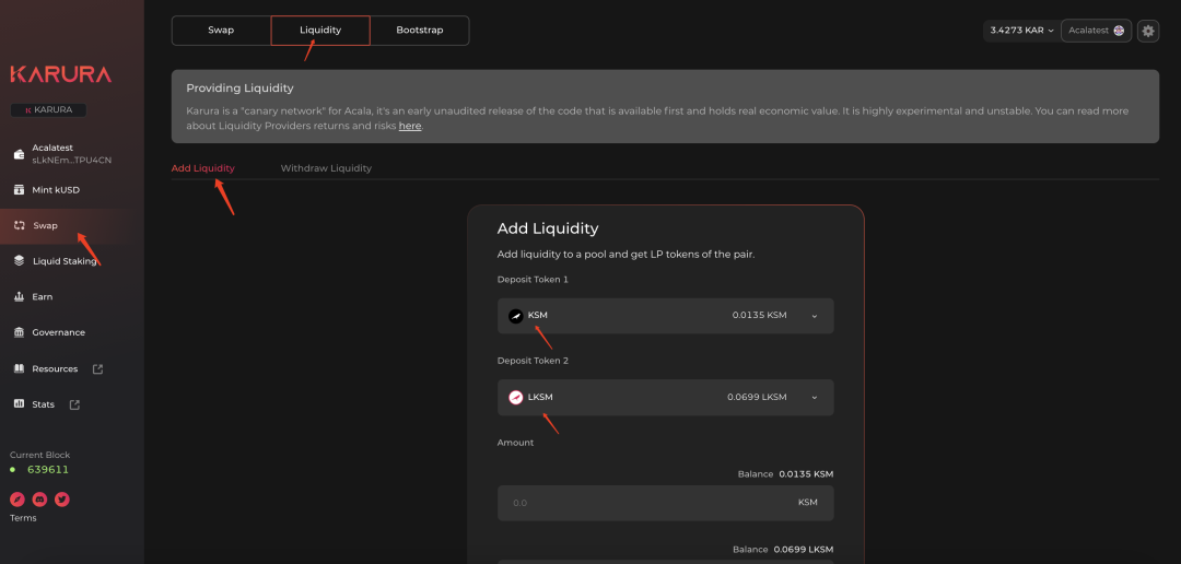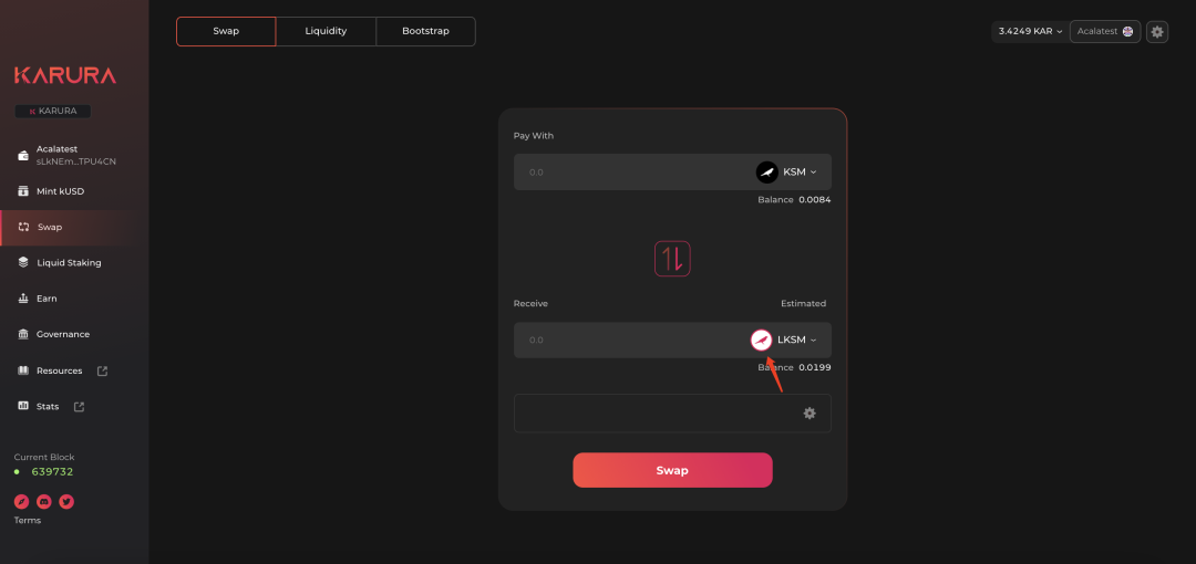 第二步:在“ Swap ” 頁面為LKSM/KSM 添加流動性成為LP 提供者。