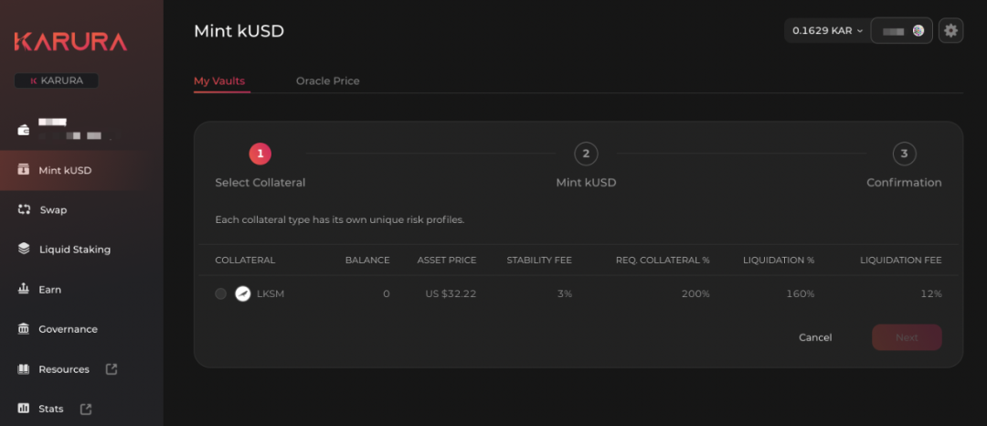 利用KSM 鑄造LKSM,並在Mint kUSD模塊中抵押LKSM ,借出kUSD;利用KSM 鑄造LKSM,然後為新的LKSM/KSM 提供流動性。
