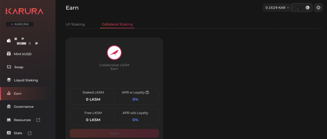第四步:在“ Earn ” 頁面就可以看到KAR 的獎勵了。