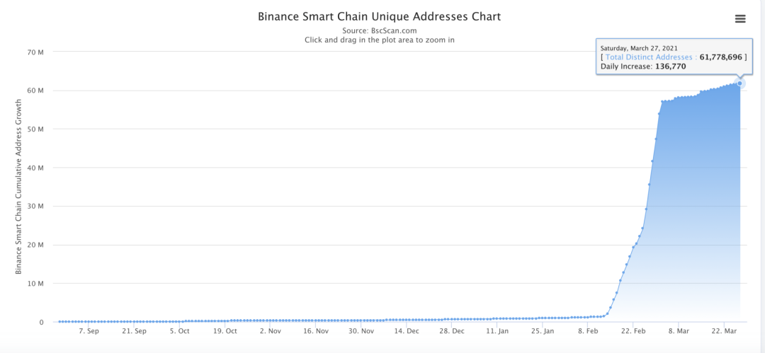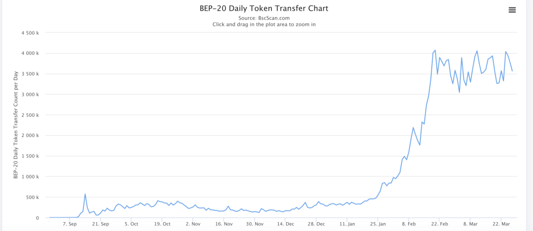 儘管包含機器人部分,但從二月初至今BSC 的用戶發展可以稱得上爆發式增長。