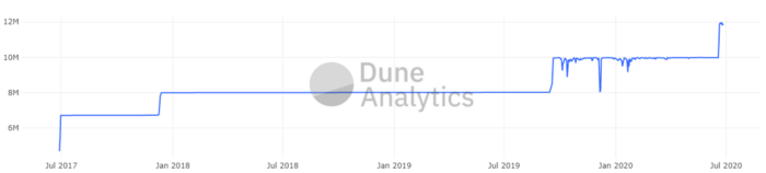 在以太坊矿工投票赞成把燃气上限提高25%(从1千万到1千2百5十万)后,最近以太坊链上使用的总燃气值创出了新高。