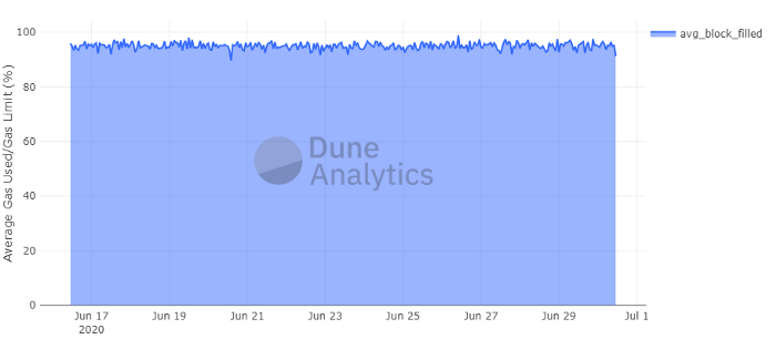 尽管燃气上限提高了,以太坊网络的链上交易需求依然很大。在燃气上限上调25%后,以太坊的区块依然是打满的,这意味着燃气上限仍需要进一步提升。