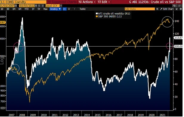 實際上,我們會發現,2022迄今的市場表現與2008年一季度非常相似,當時原油價格首次突破每桶100 美元,但隨後進入金融危機和風險資產急劇逆轉的低迷時期。