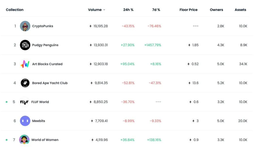 選擇該指標的原因:與同質化代幣相比,NFT 市場的流動性通常較低,而且轉移速度要慢得多。該指標很有用,因為它去除了過時的輸入數據(例如:早期的加密朋克銷售)