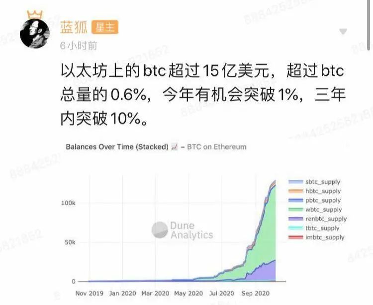 藍狐說,今年有幾乎突破1%。也就說有可能再遷移10多萬枚BTC到ETH上來。