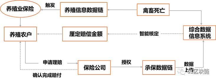 在傳統的農業保險中,農戶投保之後,保險公司便不再和農戶進行聯繫,直到發生保險事故,被保險人申請賠償。以農牧業為例,由於保險公司並未對整個養殖過程進行監管,通常難以確定事故發生的具體環節,也難以確定相關事故數據的真實性。通過將區塊鏈應用於養殖的整個過程,利用區塊鏈的分佈式記錄和存儲、非對稱加密和可追溯等特徵,可以保證養殖數據的透明化和真實性,同時還可以對各個養殖環節的數據進行追溯,有助於保險公司掌握真實的災情數據,合理評估災損。