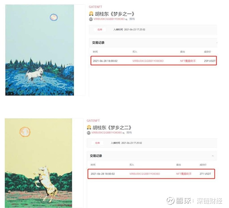 第一天的拍賣作品,系畢業於中央美院的80 後青年藝術家胡桂東創作的兩幅畫作:《夢鄉之一》和《夢鄉之二》。 6 月28 日下午18 點,兩幅畫作分別以259 美元和271 美元成交。二者的起拍價均為1 美元。