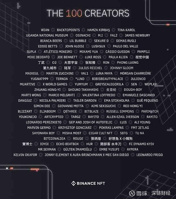 “100 位創作者” — 來自世界各地的名人和創作者:這100位創作者作品的多樣性讓用戶將能夠交易各個領域優秀創作者的NFT。在名單裡我們甚至可以看到炎亞綸,唐朝樂隊主唱丁武這些國內比較熟知的名字。
