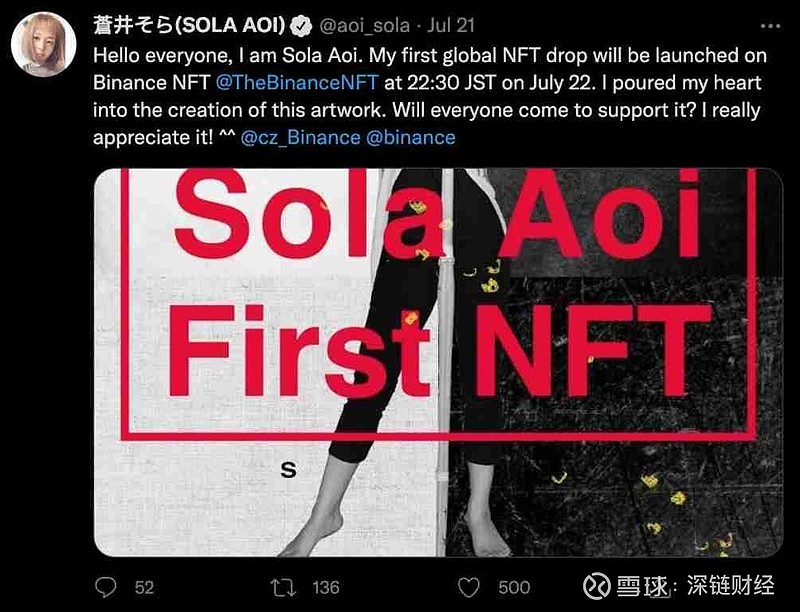 此外,國民老師蒼井空也通過BINANCE NFT 發行了自己創作的第一套NFT 作品。